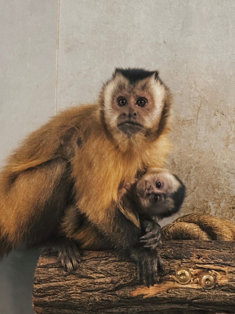 Z radością informujemy, że jesienią 2025 roku w naszym Minizoo przyszła na świat małpka kapucynka. Maluch cały czas trzyma się blisko mamy, przyczepiony do jej brzucha czy pleców, dlatego określenie jego płci jest jeszcze niemożliwe.